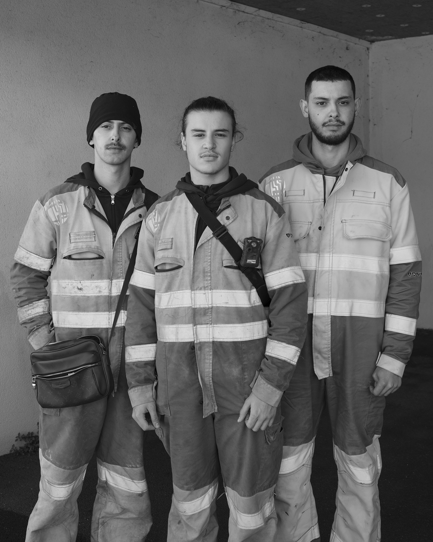 12. Élodie est une des rares femmes de l’équipe de trente chauffeurs qui, chaque matin à 10h30, se réunissent sur la place de la Commune de Paris avant d’aller charger leurs camions dans les entrepôts situés en contrebas. Bassens, 1er novembre 2023.